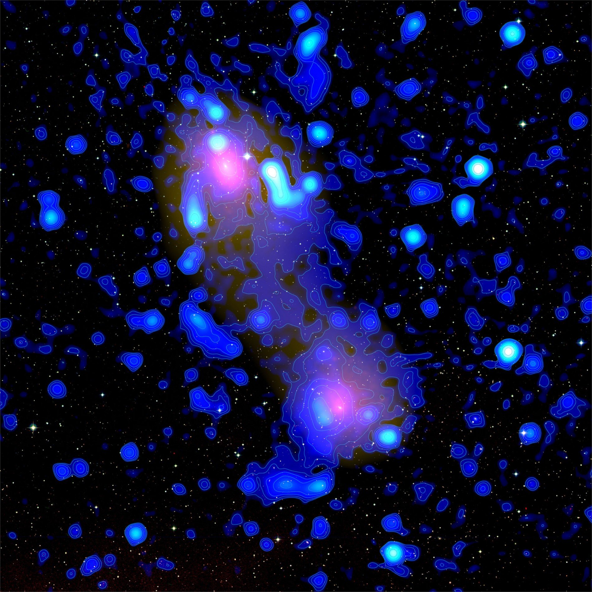 A billion light years away, two galaxy clusters are in a slow collision process. Now, for the first time, the observations have revealed a peculiar stream of radio waves that binds both clusters, like a thread stretched between galactic accounts.